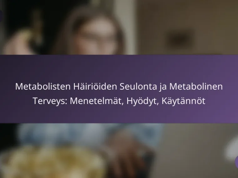 Parhaat käytännöt metabolisten häiriöiden seulonnassa keskittyvät tehokkaisiin menetelmiin, jotka parantavat potilaiden terveyttä. Tavoitteena on tunnistaa häiriöt varhaisessa vaiheessa, jotta voidaan toteuttaa tarvittavat toimenpiteet ja elämäntapamuutokset.